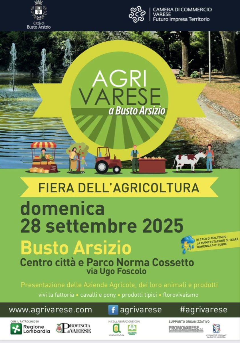 Domenica 28 settembre 2025, il centro di Busto Arsizio ospita una nuova edizione di Agrivarese, la grande manifestazione dedicata all’agricoltura, ai prodotti tipici e alla vita rurale del nostro territorio.