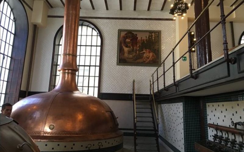 The building is full of masks, grotesques, medallions with fringes and drops, giant pilasters and shells all inspired by the naturalism and classicism of the time. Stylish decorative elements alternate with festoons of hop flowers and wrought iron vats that recall the building's functionality.