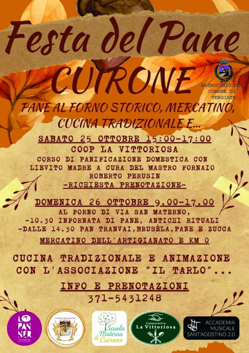 Sabato 25 e domenica 26 Ottobre 2025, torna dopo due anni la Festa del Pane a Cuirone, la frazione di Vergiate (VA).